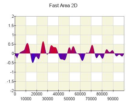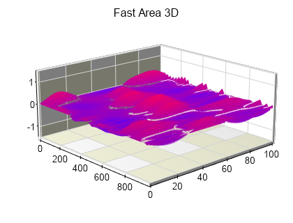The fast area series is used to display a series of bars with controllable x value, z value, color, width, depth, and origin. It is the recommended way to display bar charts when rendering very large data sets and when high performance and rendering speed are essential. The images below showcase the fast area series in 2D and 3D: